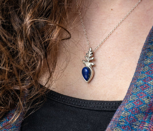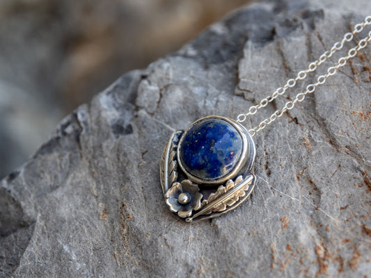 Sterling silver pendant with a Lapis Lazuli and a fern