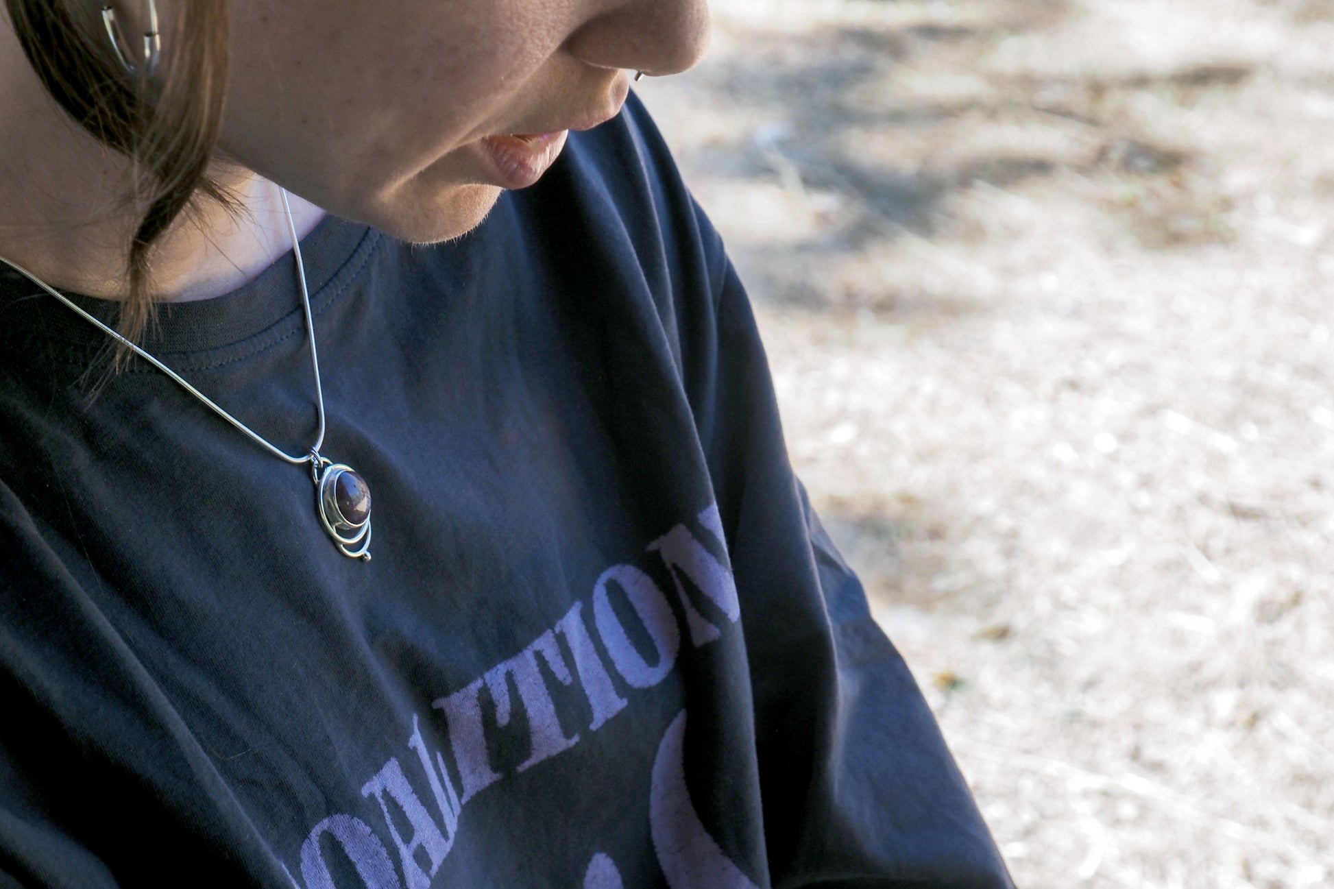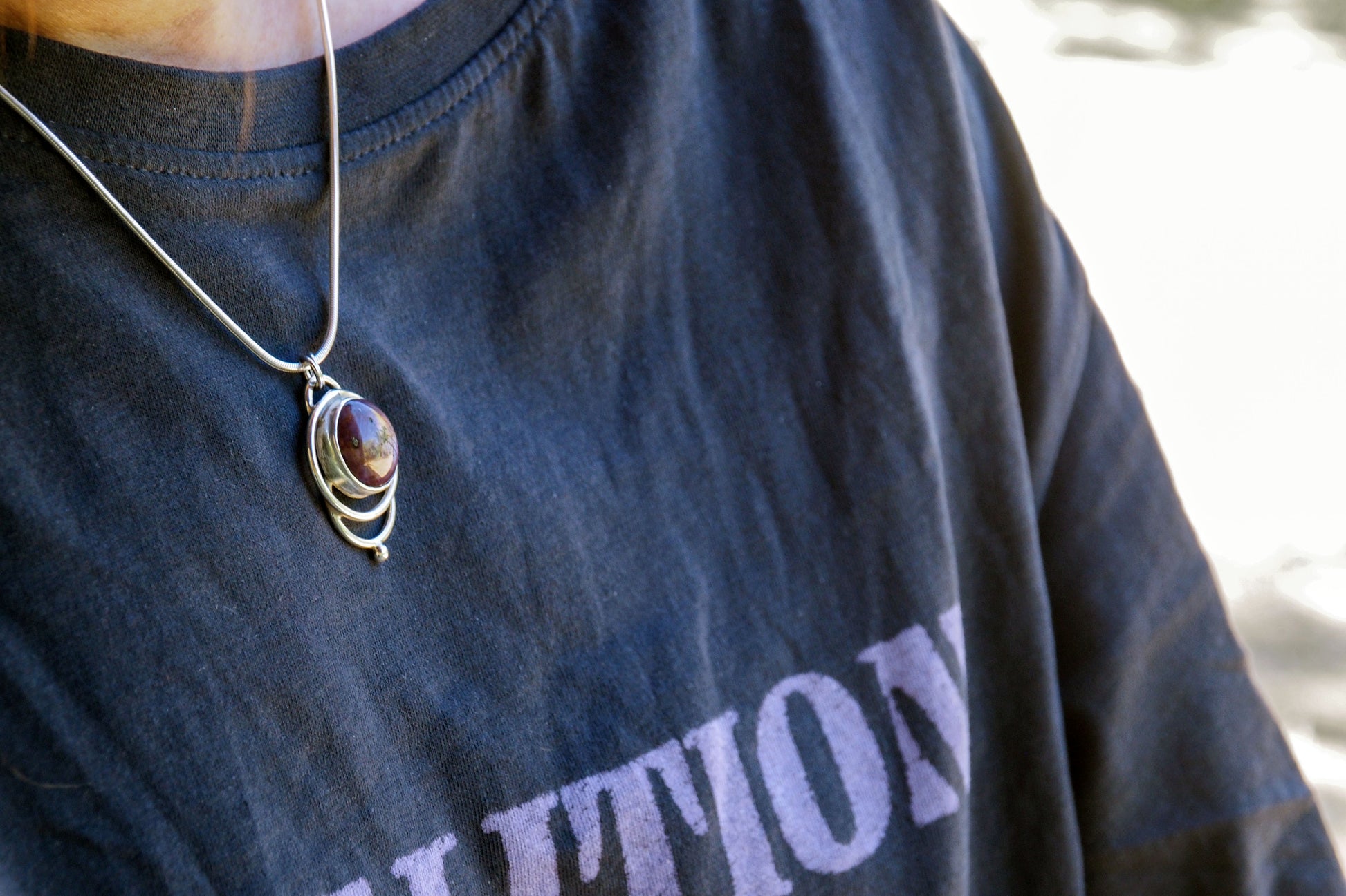 An one-of-a-kind, handcrafted necklace that blends elegance with a touch of cosmic mystery.
