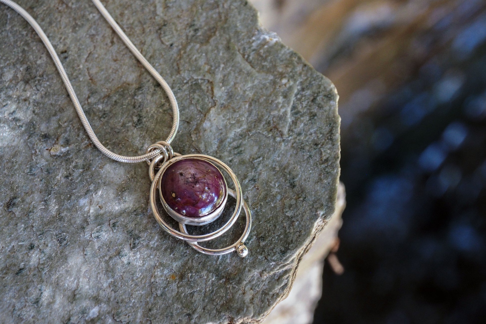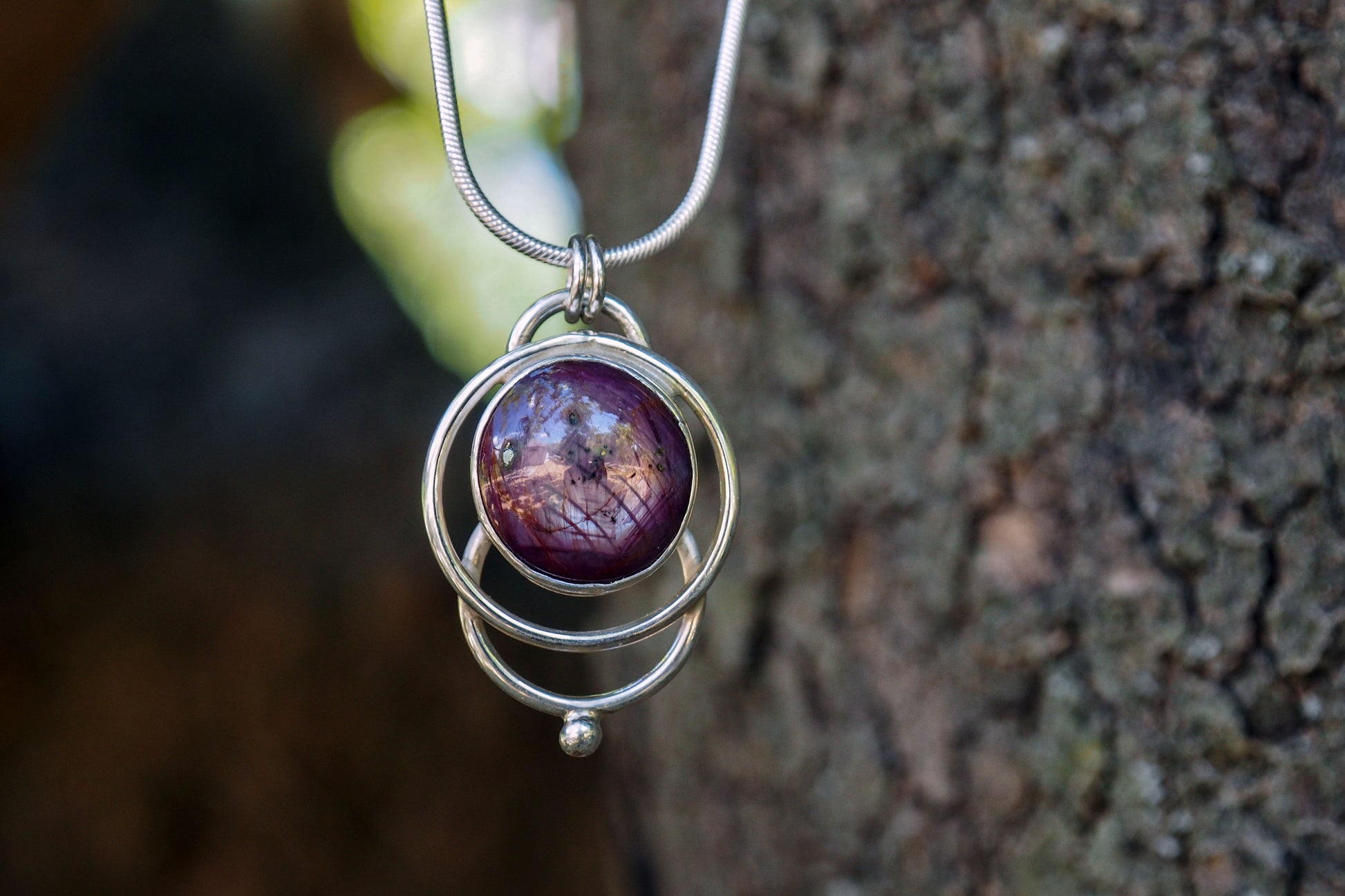 Made with Sterling Silver 925°, its design gently frames a natural Star Ruby, known for its enchanting shimmer and symbolic power.