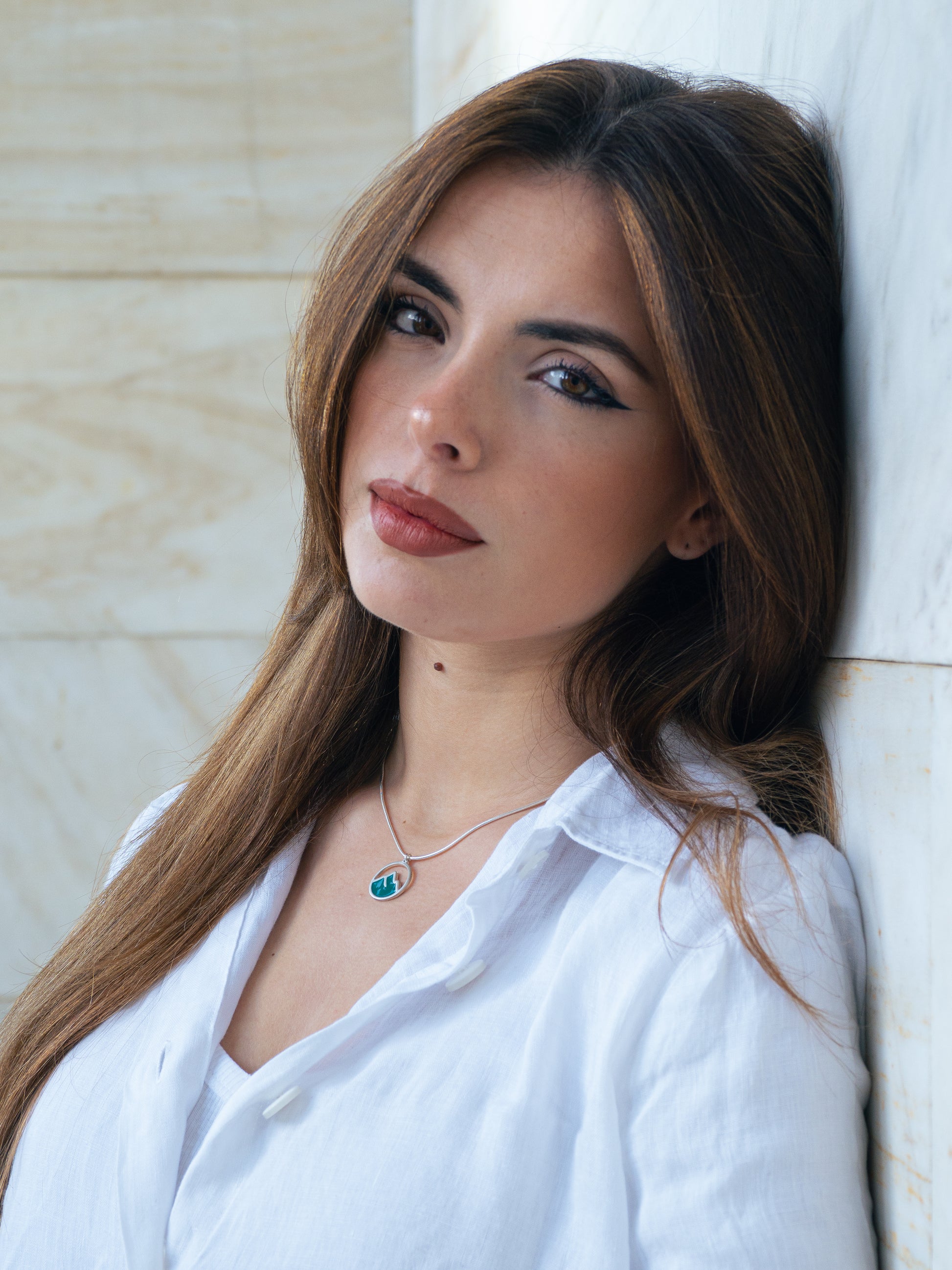 Horizon Pendant is a handcrafted silver 925 pendant inspired by the silhouette of mountain peaks and the calm power of nature. Enriched with enamel in deep green, the geometric landscape evokes balance, strength and serenity. A contemporary piece that translates natural forms into modern design, celebrating the connection between nature and geometry.
